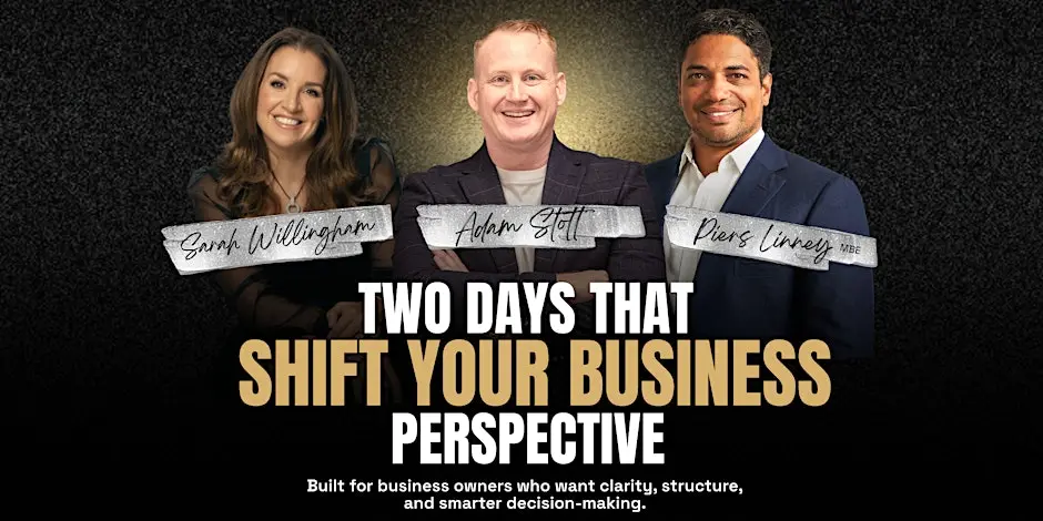 Join Sarah Willingham, Piers Linney and Adam Stott for a 2-day live business event focused on strategy, clarity and growth for 2026.